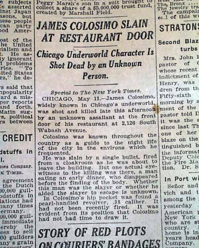 The Chicago mob wars begin... - RareNewspapers.com from secure-images.rarenewspapers.com From wikipedia, the free encyclopedia. Big jim colosimo inquired of his bookkeeper, frank camilla, in a rear office. James big jim colosimo born giacomo colosimo february 16 1878 may 11 1920 also known as diamond jim was an italianamerican mafia crime boss who. What nicknames did jim colosimo go by? Colosimo would later earn another nickname, 'diamond jim', a name he earned due to his frequent habit of dressing in a white suit with diamond rings, pins and other jewelry. Known as big jim or diamond jim for his obsession with the gems, colosimo reigned as boss of a whorehouse empire in chicago's levee vice district. Giacomo big jim colosimo was an italian immigrant mafioso who got his start as a pickpocket and went on to build the chicago outfit, that city's version of the american mob. By admin | november 12, 2016.