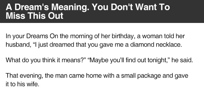 Diamond Necklace Dream Meaning : The meaning and symbolism of the word - «Intersection». Dreams can feel scary and foretelling to some, but other times they may seem like good and pointless fun. We earn a commission for products purchased through some links in this article. Do your dreams really hold a hidden meaning? The inportant part was when psychiatrist said u wear this collar becuase she was giving a pep talk to someone else the inportant part was when psychiatrist said u wear this collar becuase she was giving a pep talk to someone else 11 years a. What do our dreams mean?